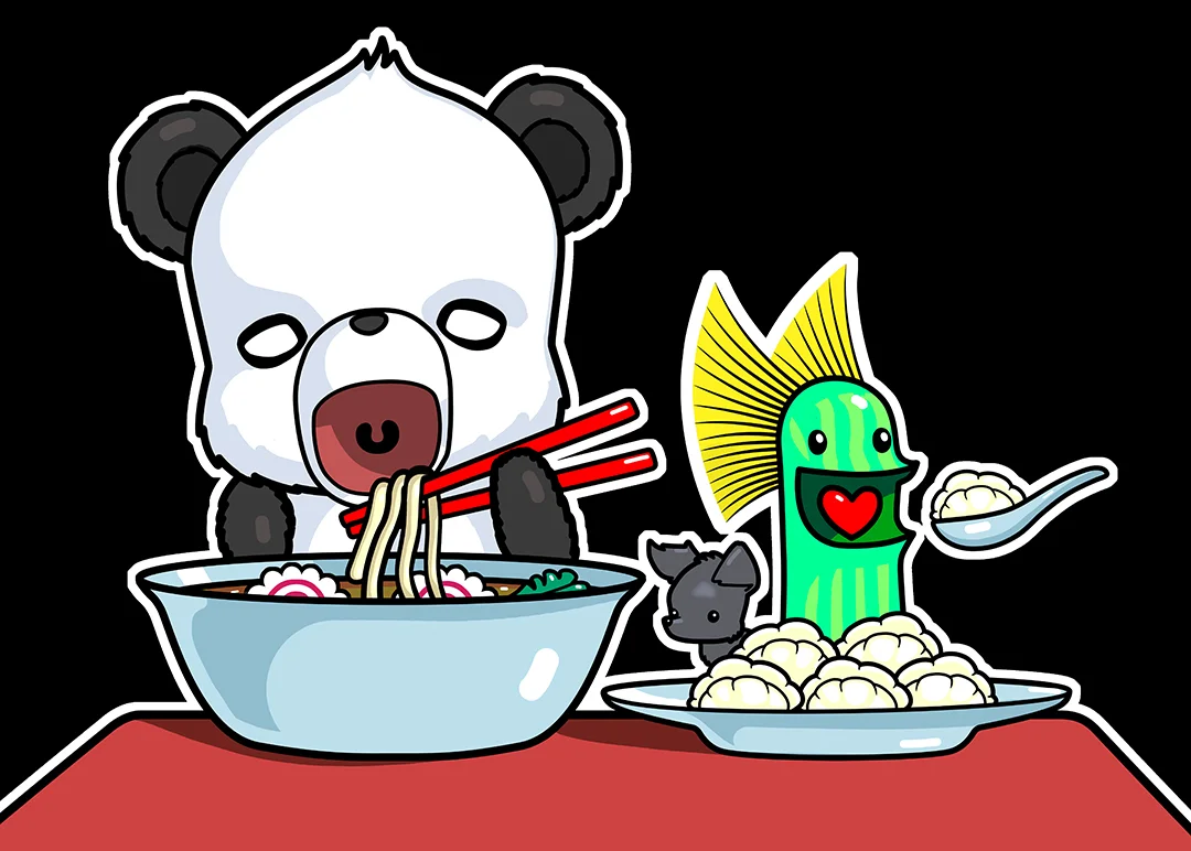 His strengths are his intelligence, creativity, and fortitude, while his weakness is delicious foods, particularly bamboo, redbean, and tasty dumplings and noodles.